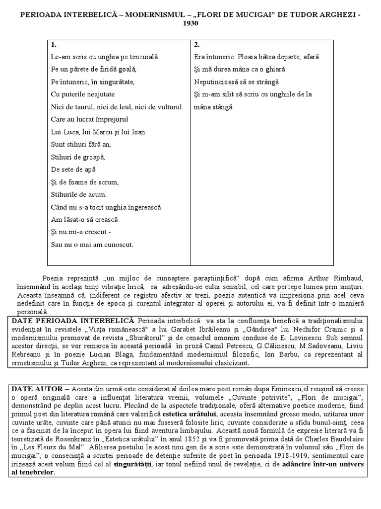 Flori De Mucigai De Tudor Arghezi Comentariu Literar Rezumat