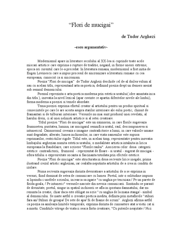 Flori De Mucigai Comentariu Modernism