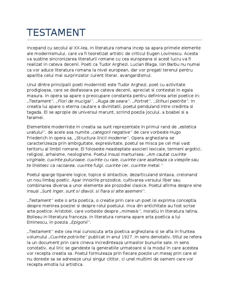 Tema Si Viziunedespre Lume Text Poetic Arghezi Testament Vyly2ejdwe4m