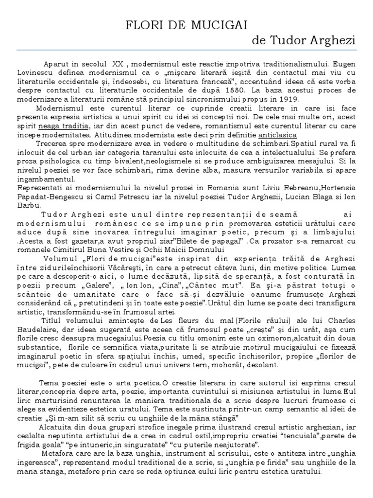 Flori De Mucigai De Tudor Arghezi Bac