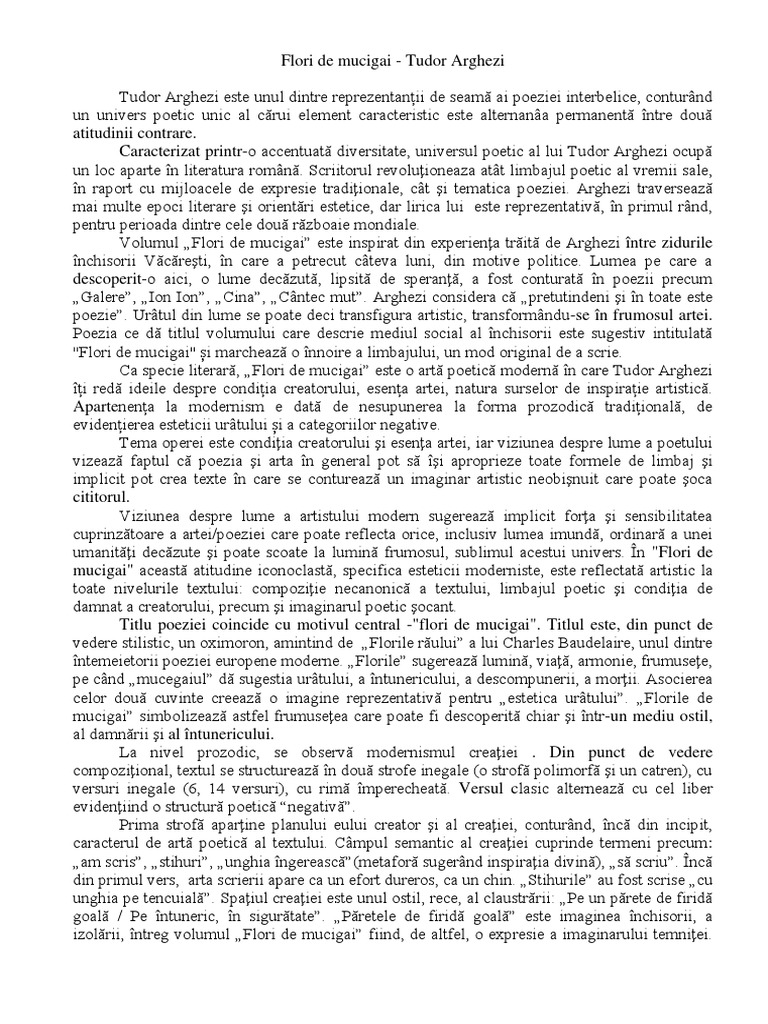 Poezia Flori De Mucigai Scrisa De Tudor Arghezi Referat