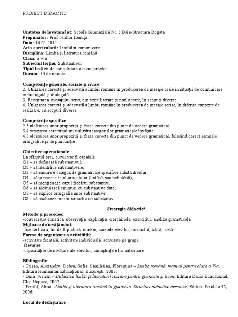 0 Proiect Didactic Substantivulconsolidare Cl 5