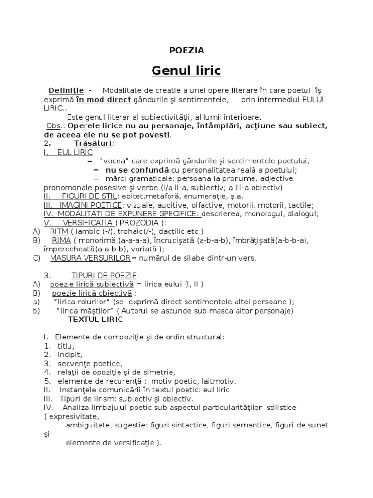 Poezia Genul Liric