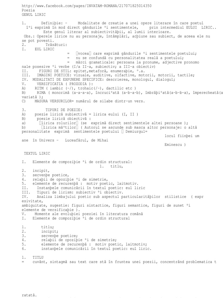 Bac 2018 Limba Romană Trăsăturile Genului Liric La Subiectul Iii