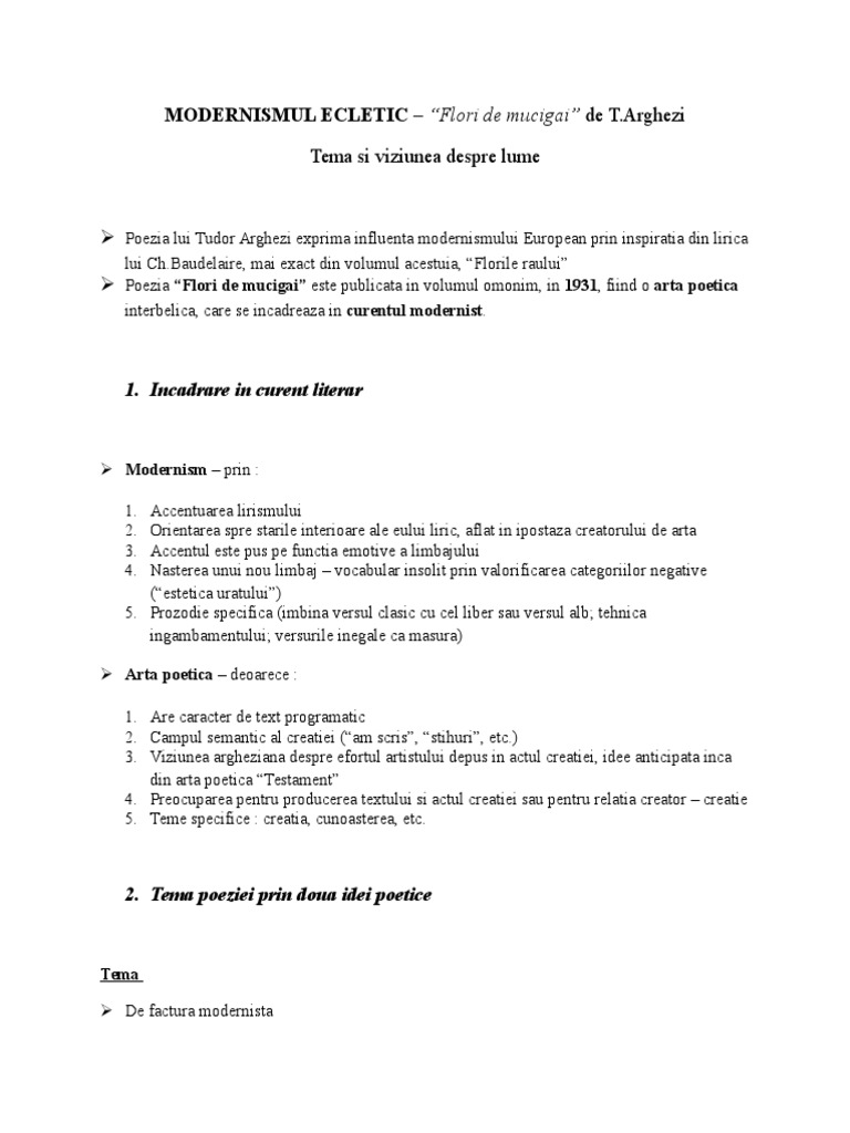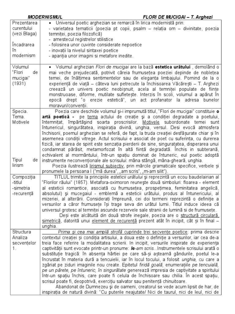 Tudor Arghezi Flori De Mucigai Referat