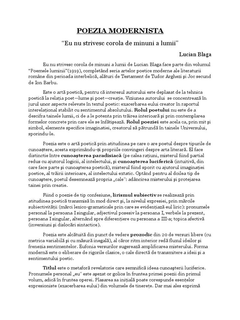 Bacalaureat Limba Romană Mărcile Eului Liric Wattpad