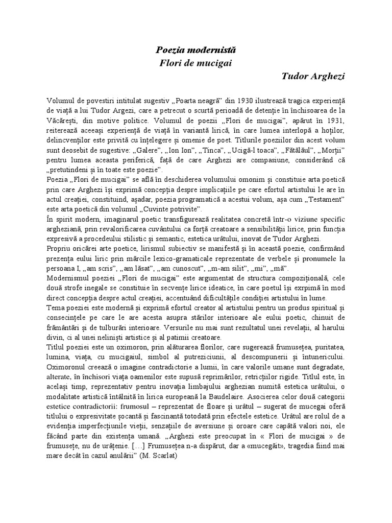 Poezia Flori De Mucigai Scrisa De Tudor Arghezi Referat