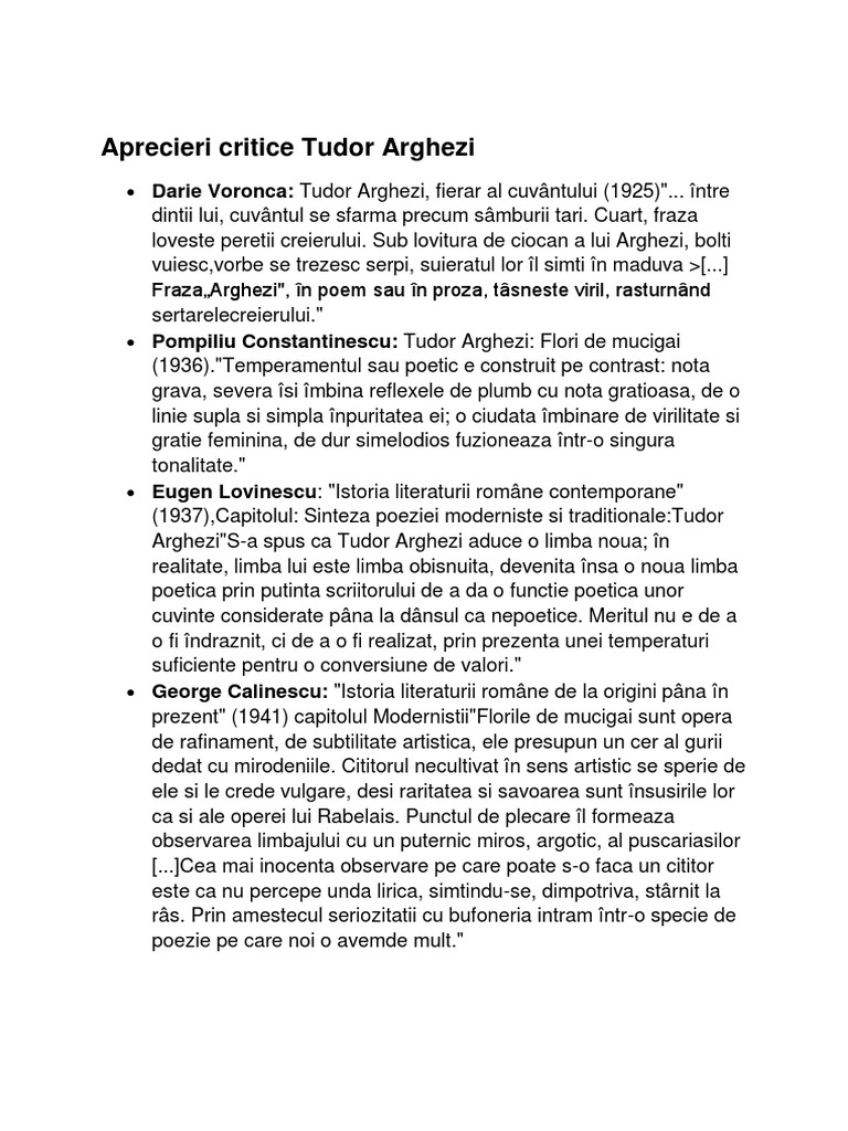Aprecieri Critice Tudor Arghezi