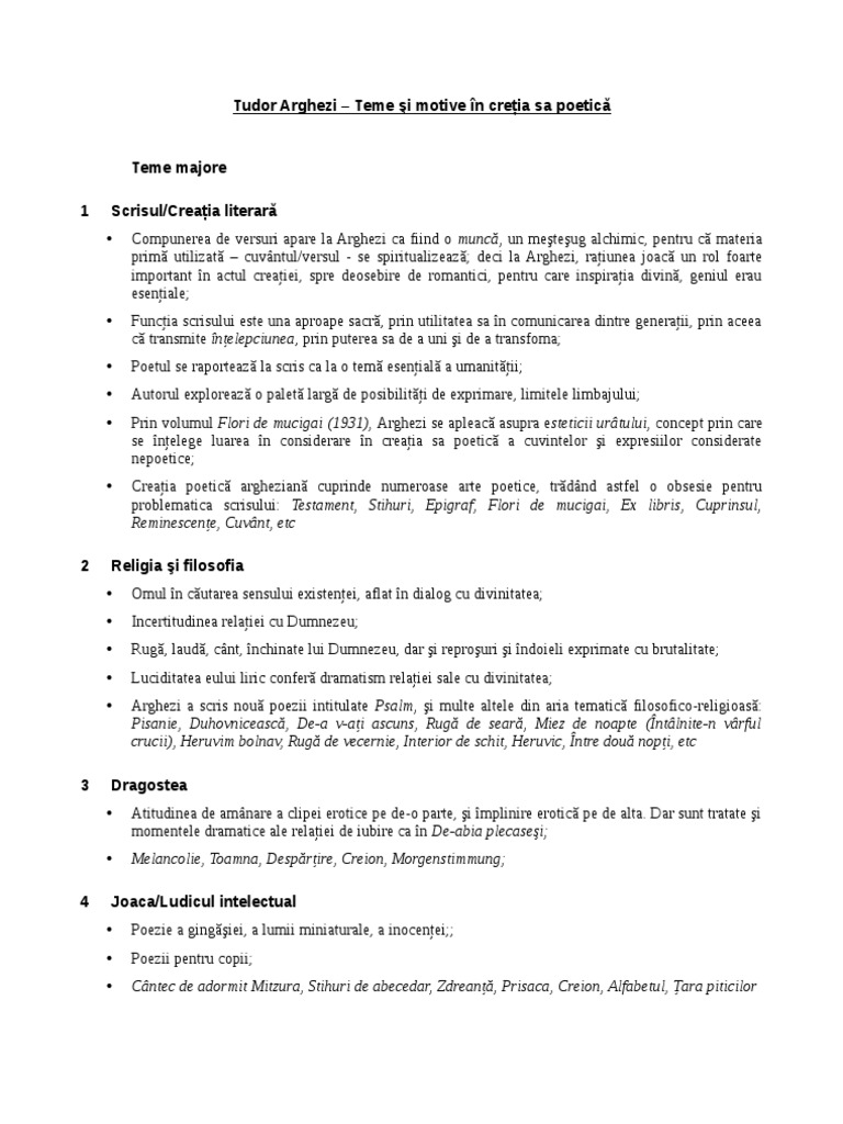 Arghezi Teme Si Motive
