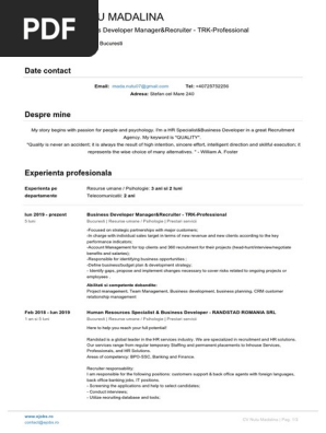 Cv Nutu Madalina Ro Recruitment Human Resources