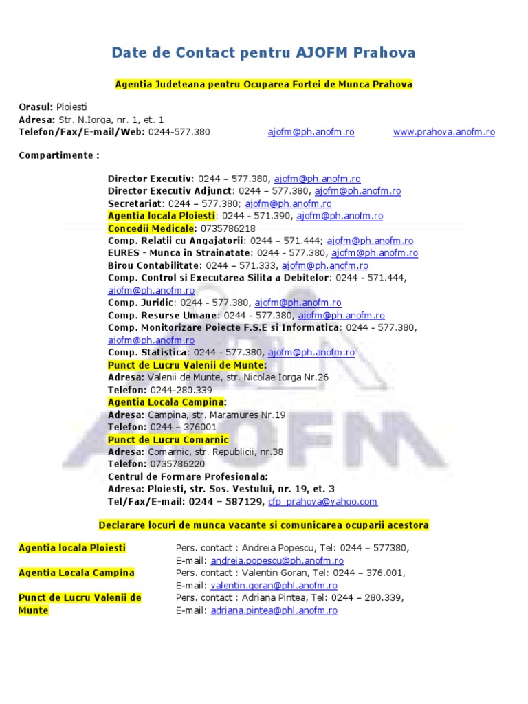 Date De Contact Pentru Ajofm Prahova