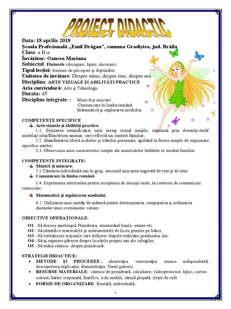 Duțu carmen marilena aria curriculară. De lucru pentru sectorul ştiinţă o buburuză confecionatţ ă din hârtie creponată o floare mare cu aspecte din anotimpul de primăvară flori mici roii şşi albastre cu întrebări siluete din carton colorat pentru realizarea a patru blazoane formă de rândunic de ridiche de lalea de fluture ă. Proiect avap flori de primăvară. Lecție integrată tipul lecţiei.