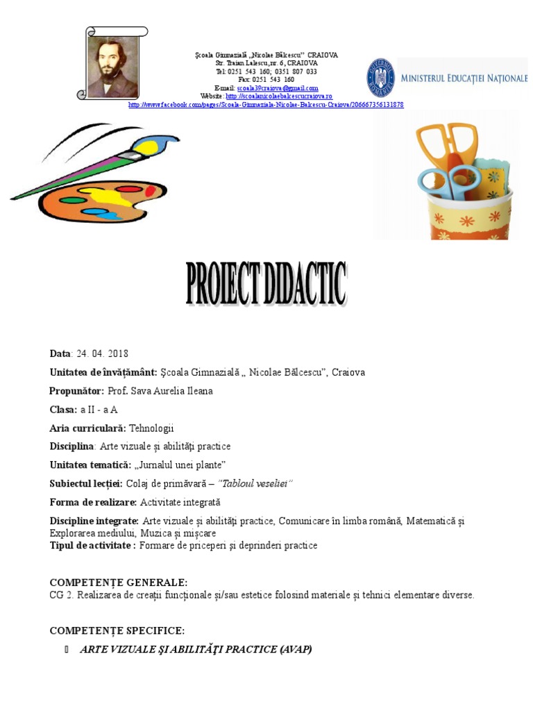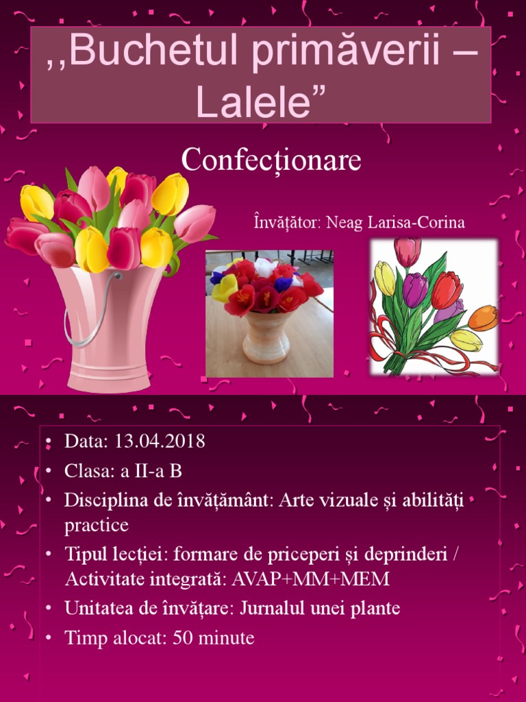 Proiect avap flori de primavara. Proiect de lectie avap tablou de primavara. 5 martie 2016 17 03. învăţământ primar abilităţi practice educaţie tehnologic ă. Realizarea de creații.