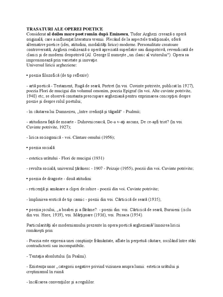 Sinteza Bac Romana Flori De Mucigai Tudor Arghezi